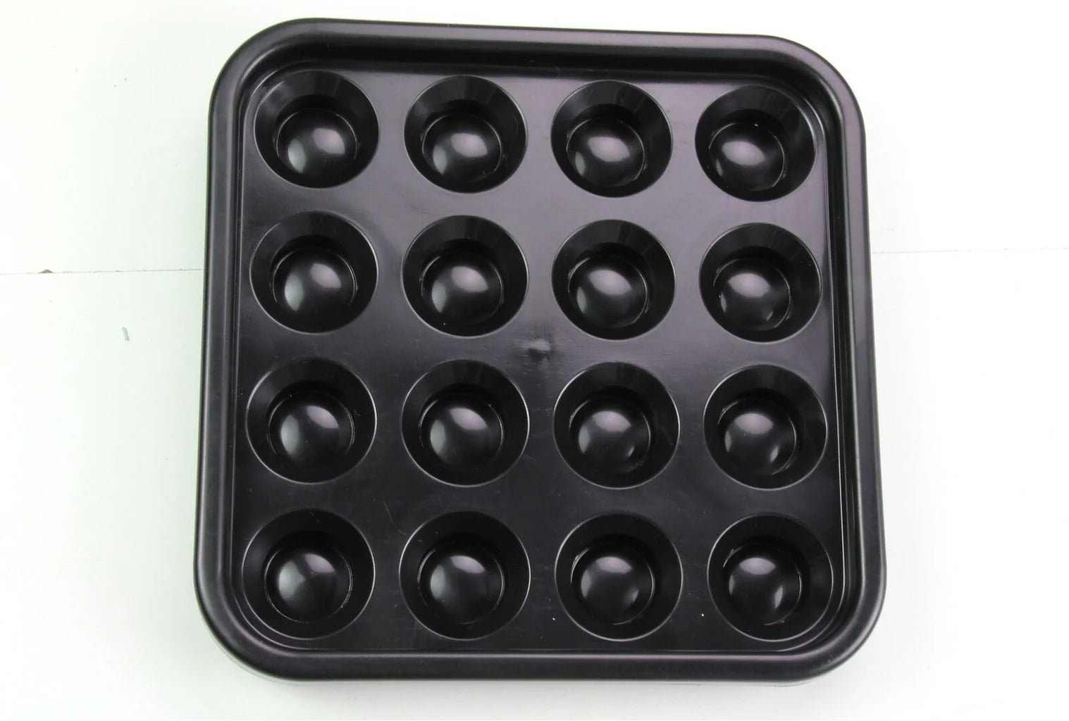Simple black plastic tray for storing and carrying 2 Inch pool balls